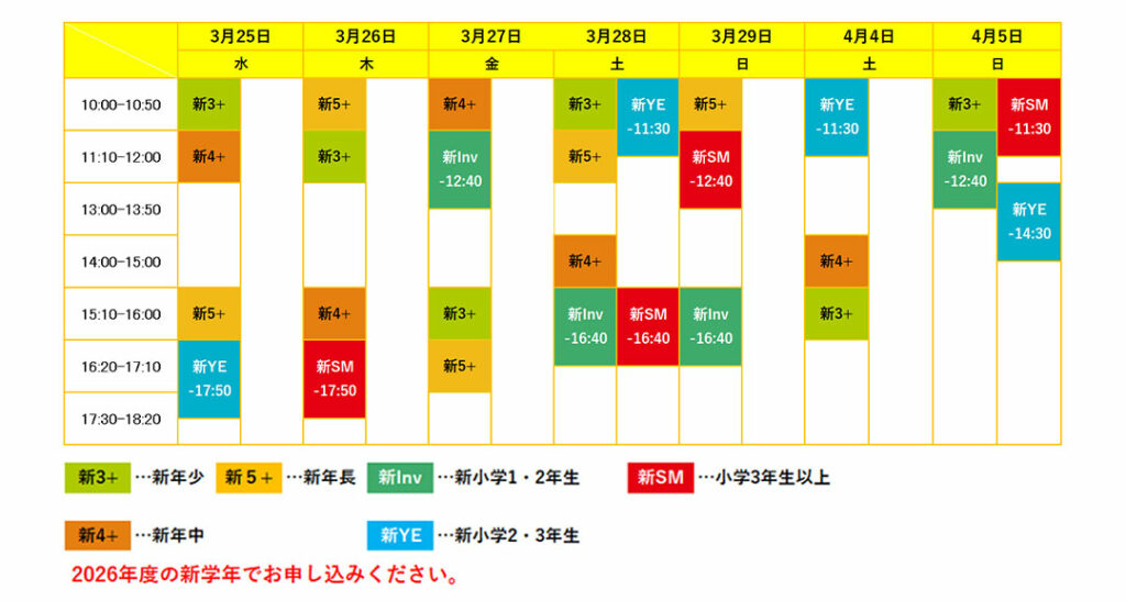 ・個別体験レッスンも受け付けておりますので、お電話にてご希望の日時をスタッフにお知らせください。